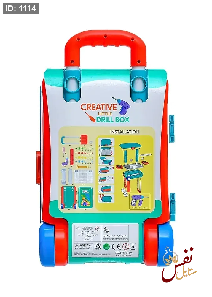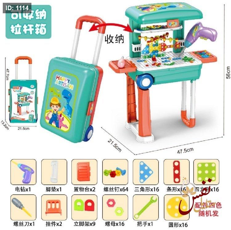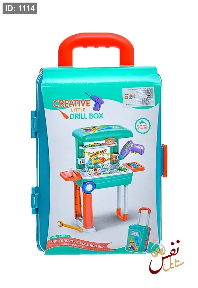 تتميز بتصميم آمن وسهل الحمل، حيث تتحول إلى ورشة عمل مصغرة تحتوي على أدوات مثل المثقاب الكهربائي والمفك.
