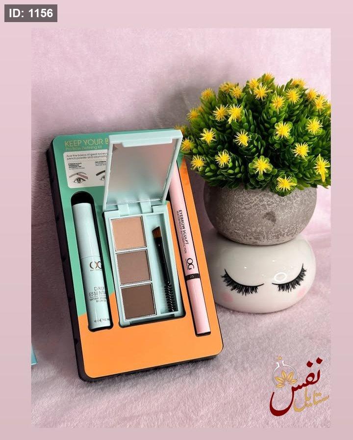 لوحة ظلال حواجب بثلاثة ألوان وفرشاة تطبيق.