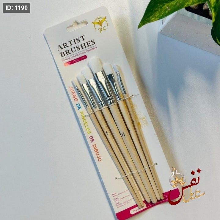 طقم فرشاة ألوان مائية 6 قطع رأس مسطح ابيض