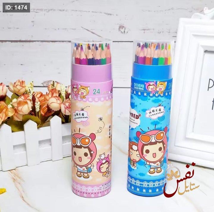 الوان خشب 24 لون علبه اسطواني