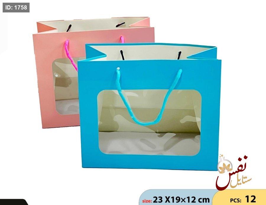 كيس كرتون عرضي19*23سم وجه شفاف 12 كيس
