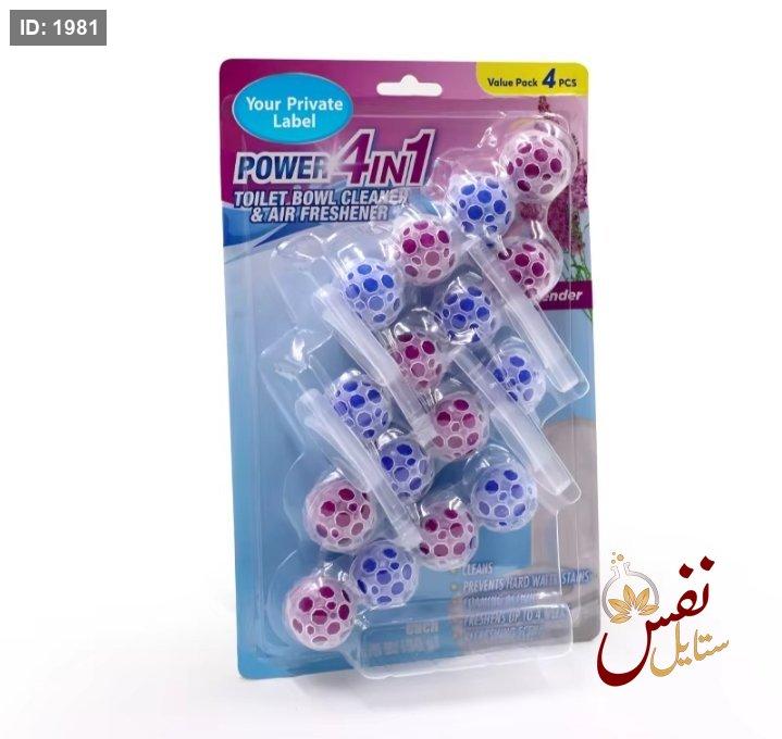 الاستخدام: يُعلّق على حافة وعاء المرحاض، ويُطلق مواد تنظيف مع كل تدفق للماء.