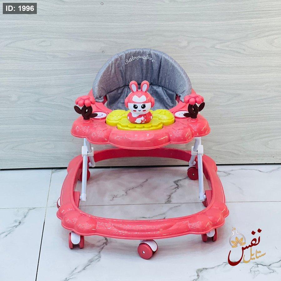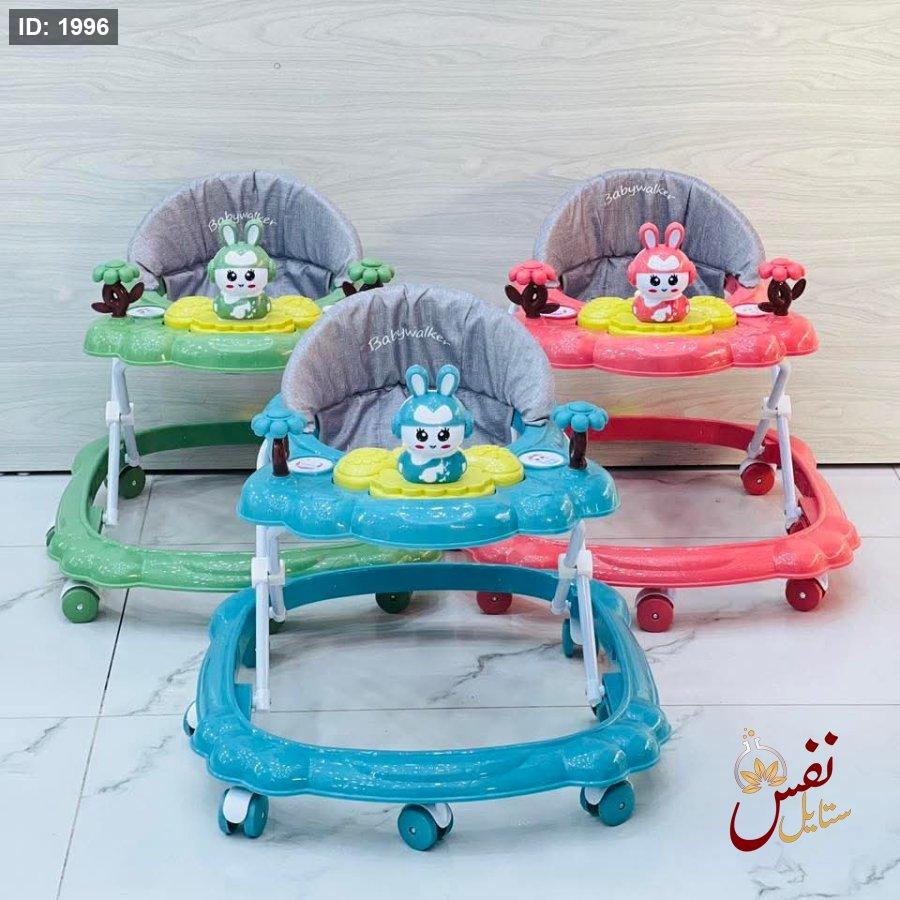الميزات: تتميز بإطار صلب وعجلات، ومقعد مع فتحات للساقين، وقد تحتوي على ألعاب مرفقة للترفيه.
