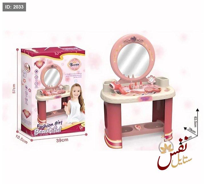 تصميم جذاب: تأتي بتصميم وردي مزين بقلوب ومرآة بيضاوية الشكل، مما يجعلها جذابة للأطفال.