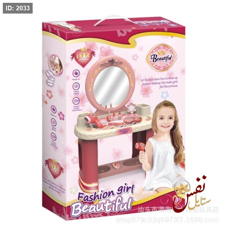 محتويات المجموعة: تشمل مجموعة من الإكسسوارات التجميلية اللعبة مثل أحمر الشفاه، والعطور، وفرشاة الشعر، وربما غيرها من أدوات الزينة.