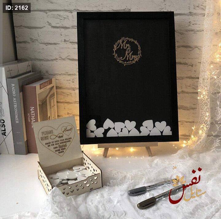 ستاند تذكار مع قلوب خشب للتوقيعات