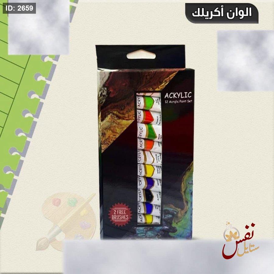 مجموعة 12 لون اكريليك تيوب 12مل مع فرشاتين