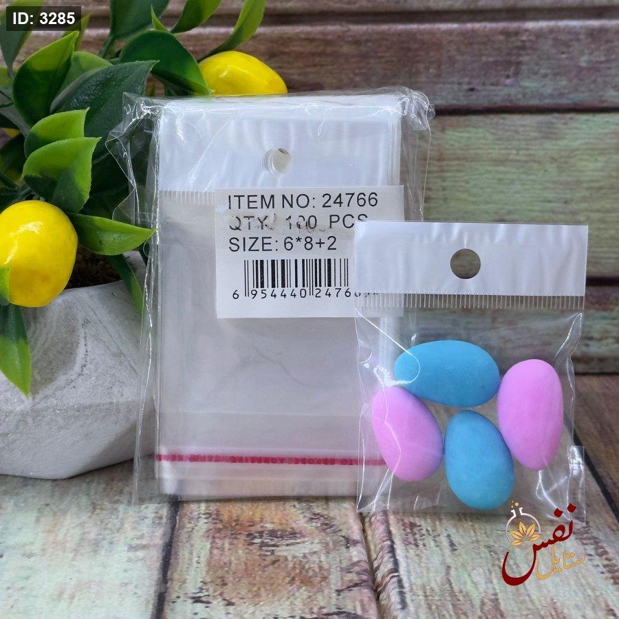 مجموعة (100كيس) تغليف شفاف مع تعليقة وشريط لاصق حجم 6*8 سم