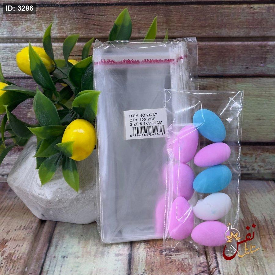 مجموعة (100كيس) تغليف شفاف مع شريط لاصق حجم 5.5*11 سم