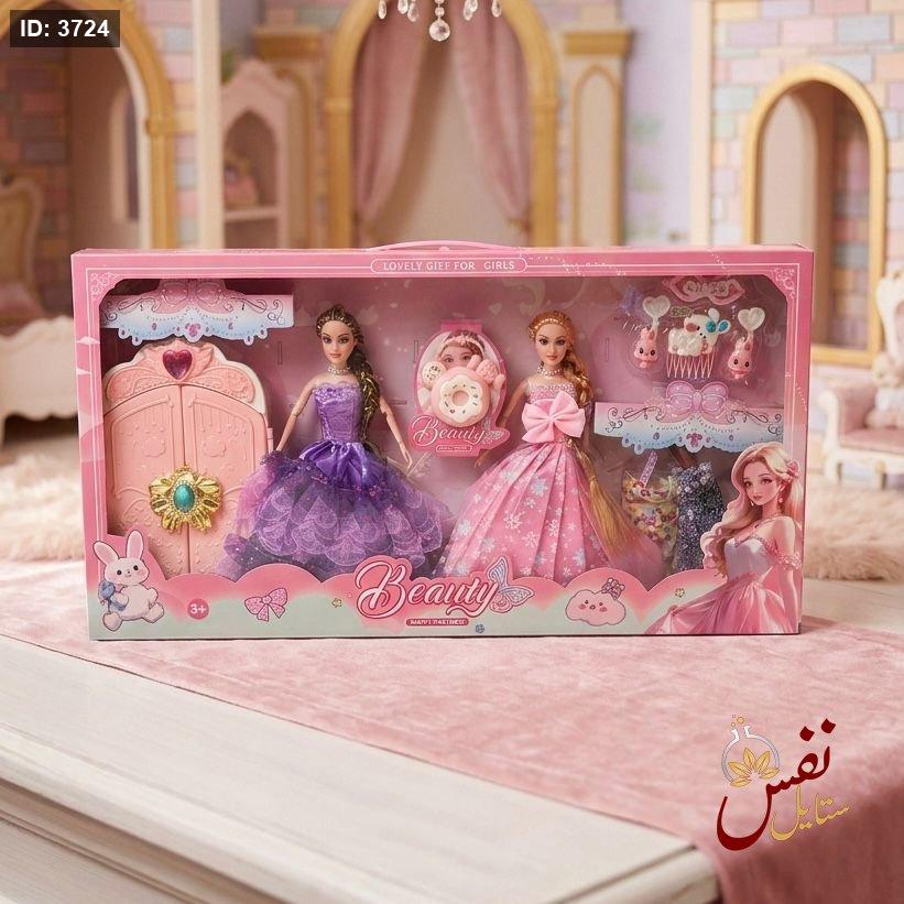 لعبة 2 باربي بعلبة مع ملابس وخزانة
