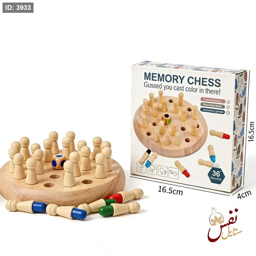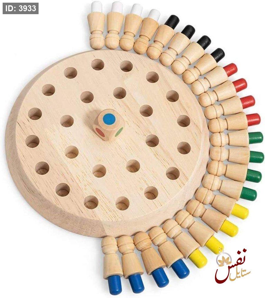 المكونات: لوحة خشبية، نرد ملون، وقطع شطرنج ملونة.