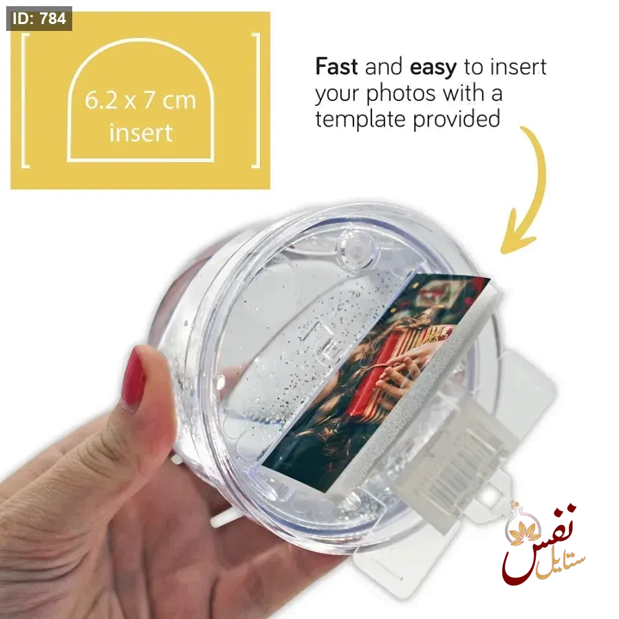 تُعد كرات الثلج هذه طريقة أنيقة وتفاعلية لعرض الصور، كما أنها تُعتبر هدية شخصية مثالية لمختلف المناسبات. يمكن تغيير الصور بسهولة عن طريق إزالة القاعدة وإدخال الصورة الجديدة.